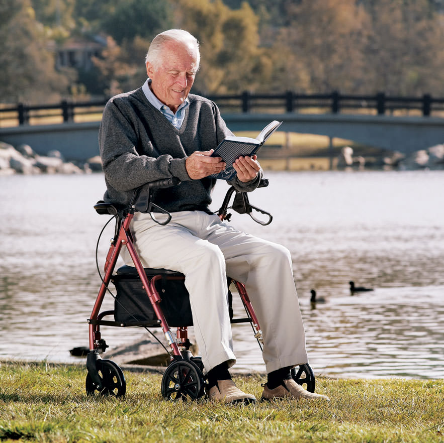 This top-of-the-line rollator offers a superb combination of mobility and comfort to compliment your active lifestyle. This rollator has handbrakes to help you stay safe when walking. The handbrakes can lock into place to provide you with a secure spot to rest that won't unexpectedly roll. A padded seat comes in the middle of the rollator along with a curved backrest for increased comfort.