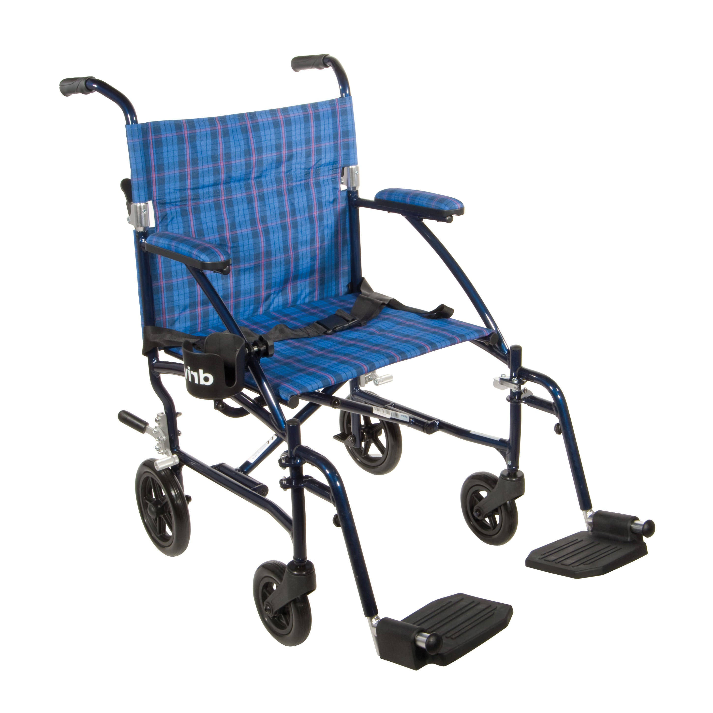The Fly-Lite Aluminum Transport Chair weighs only 16.8 lbs. (without footrests) and is one of the lightest transport chairs on the market. The lightweight aluminum frame is strong and durable, the seat is made of nylon upholstery that is offered in 3 different colored plaid styles, and also features a carry pocket on the back. A convenient cup holder can easily attach to chair. Cup holder is sold separately.